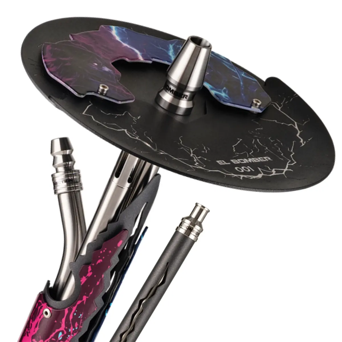 EL BOMBER MK LMT este o narghilea în ediție limitată, inspirată din universul Mortal Kombat și din contrastul iconic dintre personajele Mileena și Smoke. Designul îmbină perfect energia violet intensă cu misterul nuanțelor reci, creând o estetică puternică, demnă de arena legendară.