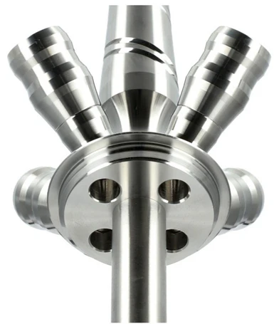 Narghileaua este echipată cu patru porturi pentru furtun, toate cu conexiune 18/8, fiind ideală pentru sesiuni de grup sau configurații multiple. În pachet este inclus un set complet de furtun din silicon antistatic, precum și un set de creuzet tip chimney, gata pentru utilizare imediată.